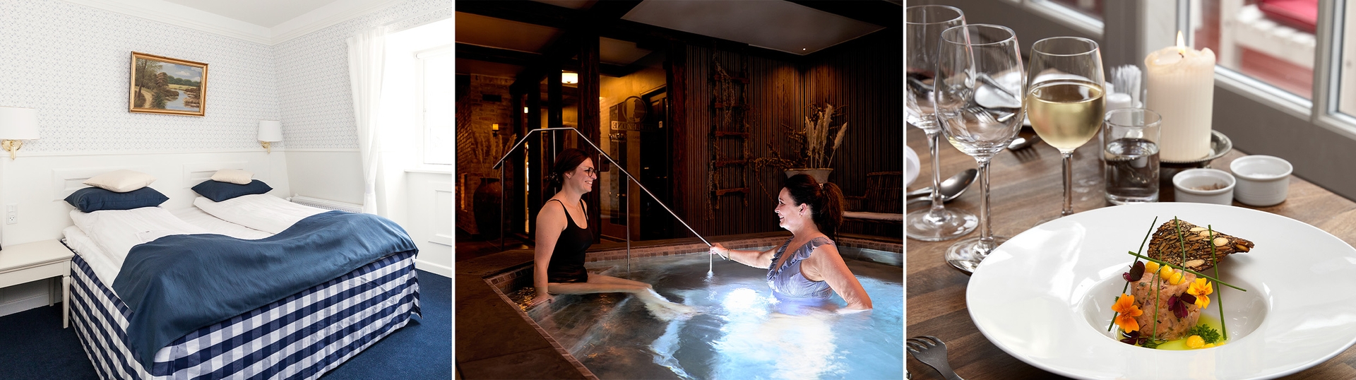 Restauranten: Vores restaurant er lukket for middag alle søndage og helligdage. Det er derfor ikke muligt at booke ophold med middag inklusiv, på eller henover, disse dage.
