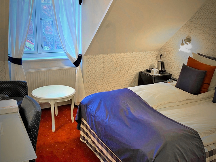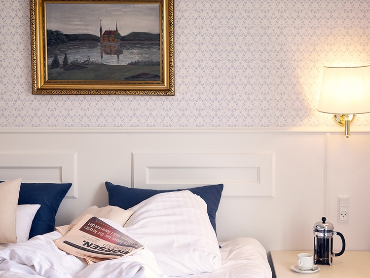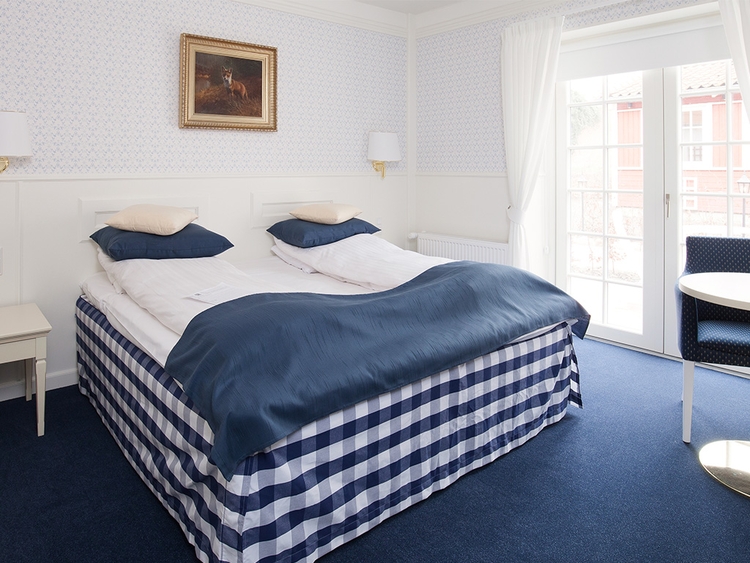 Beliggende i vores værelsesfløj med egen en lille terrasse eller gårdhave.